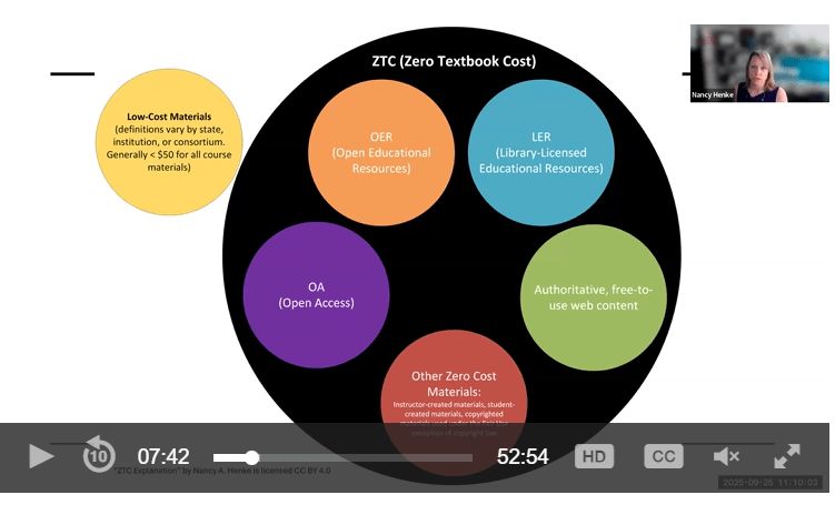 This webinar offers a high-level view of the textbook affordability landscape and the library’s role in this movement. It examines the differences among Open Educational Resources (OER), Library-Licensed Educational Resources (LER), and Zero Textbook Cost (ZTC) initiatives, and considers commercial responses such as automatic textbook billing programs. The session highlights how libraries support each model through curation, publishing, outreach, and faculty collaboration, and provides an overview of key organizations shaping open education and affordability, including SPARC, OEGlobal, and Creative Commons, along with mission-driven publishers like OpenStax and LibreTexts.